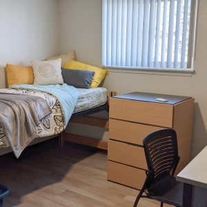 Zakwaterowanie w akademikach na terenie kampusu. Pralnia dostępna (za niewielką opłatą). Szybki Internet w całym obiekcie. Wspólna przestrzeń na każdym piętrze budynku w tym pokoje do nauki i sala gier. Uczniowie są odpowiedzialni za utrzymanie czystości i porządku w swoich pokojach. Pomieszczenia ogólnodostępne sprzątane są codziennie, a pościel zmieniana co tydzień. Ręczniki zapewnione.