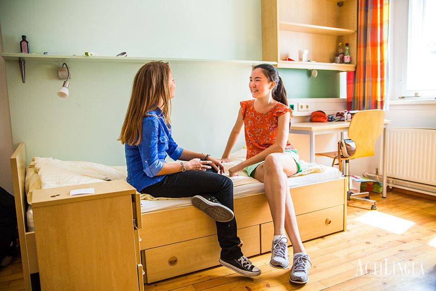 W budynku szkolnym oprócz klas, świetlic oraz restauracji znajduje się również wydzielona część mieszkalna. Wszyscy uczestnicy mieszkają w przestronnych oraz przyjemnie i komfortowo urządzonych pokojach 4-6 os (prysznice na korytarzu) bezpośrednio na terenie kampusu. Chłopcy i dziewczęta mieszkają osobno. Za dopłatą dostępne pokoje typu superior- skrzydło z pokojami superior jest niedawno wyremontowane i lepiej wyposażone.