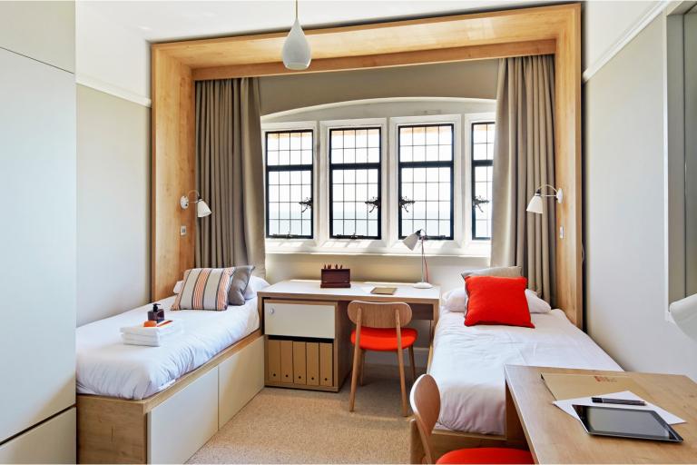 Nauka i zakwaterowanie na terenie pięknie zlokalizowanego kampusu. Pobyt w komfortowych w pokojach ze wspólnymi łazienkami. Każdy dom posiada salon, w którym można spotkać się z przyjaciółmi oraz pokój hobby do grania w gry planszowe.