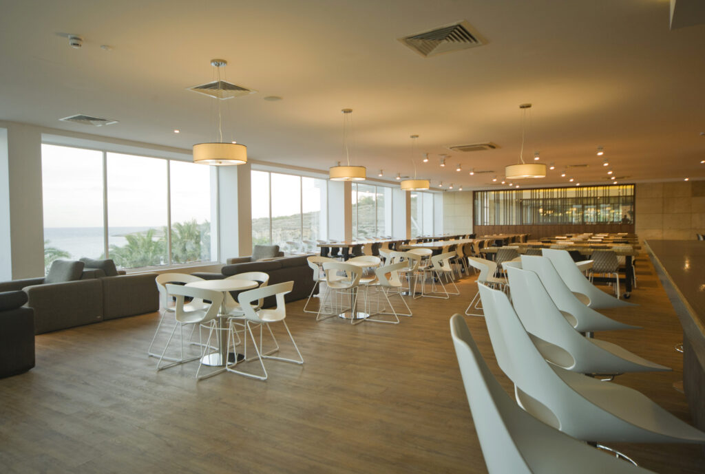 Pokoje 4-osobowe, klimatyzowane z łazienkami i balkonami wyposażone w TV i radio. Na terenie Salini Resort znajdują się 3 baseny, boisko, kort tenisowy, piłkarzyki, bilard, stanowiska z tabletami, duże lobby, stołówka i restauracja oraz 18 sal lekcyjnych wyposażonych w tablice multimedialne.