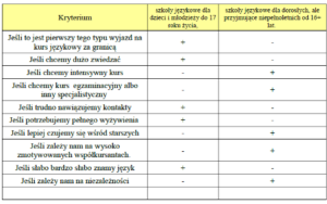 - szkoły językowe dla dorosłych ale przyjmujące niepełnoletnich od 16+ lat.